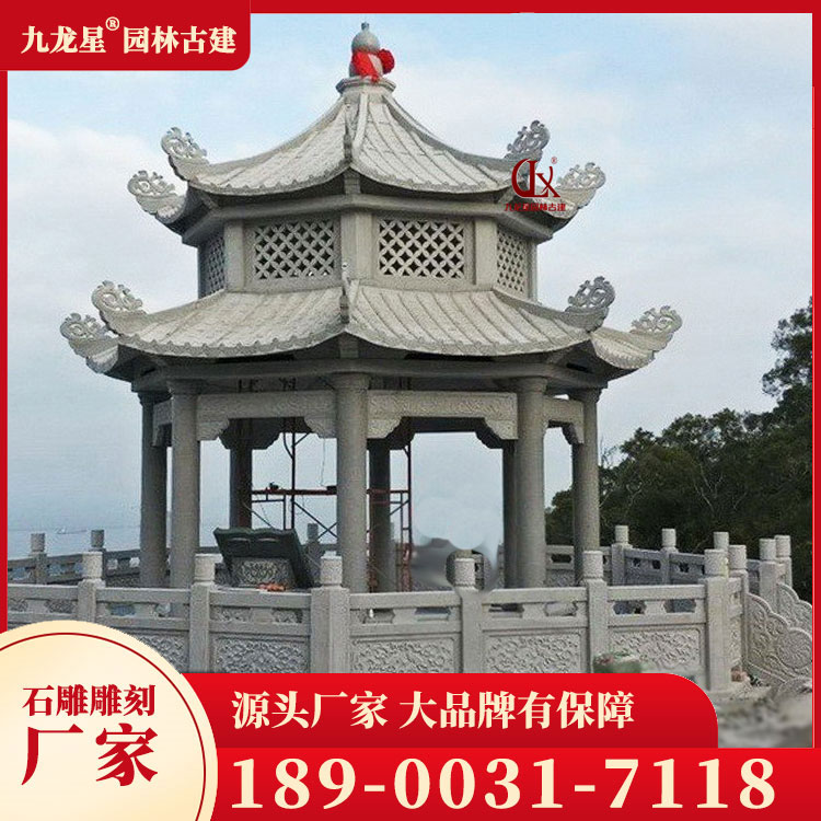 仿古石雕涼亭采用仿古的設計風格,配上石雕圖案,更顯出涼亭的精致和美觀。而且,這種涼亭的樣式是支持定制的,可以根據不同的需求和風格設計調整,滿足不同樣式的需求,為村莊旅游帶來更好的效果。